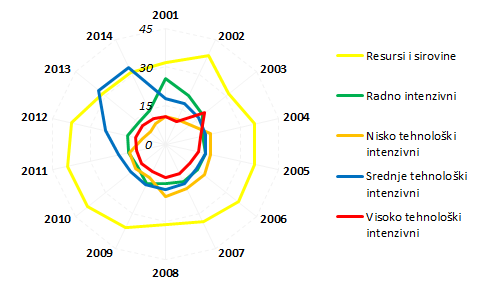Robni izvoz u Srbiji prema faktorskoj intenzivnosti (Merchandise Exports of Serbia by Factor Intensity)